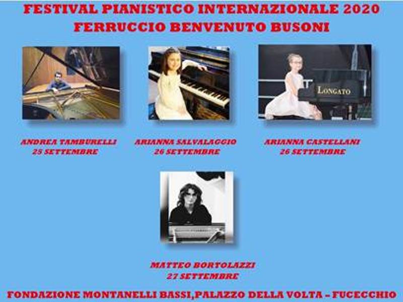 Parallelamente negli stessi giorni sempre presso la Fondazione Montanelli Bassi si terranno concerti serali inseriti nel Festival Pianistico Internazionale dedicato a Ferruccio Benvenuto Busoni e tenuti da giovani pianisti di grande talento. Venerdì 25 settembre si esibirà Andrea Tamburelli,giovane talento milanese,che eseguirà musiche di L.v. Beethoven, F. Chopin, F. Liszt e C. Debussy. Sabato 26 sarà la volta di Arianna Salvalaggio ed Arianna Castellani,due pianiste vincitrici di Concorsi Nazionali ed Internazionali nonostante la giovanissima età:eseguiranno musiche di W.A. Mozart,F. Chopin,C. Debussy e S. Prokofiev. Domenica 27 ore 19.30 suonerà Matteo Bortolazzi,giovane pianista che eseguirà musiche di L.v. Beethoven,F. Liszt e F. Chopin.
