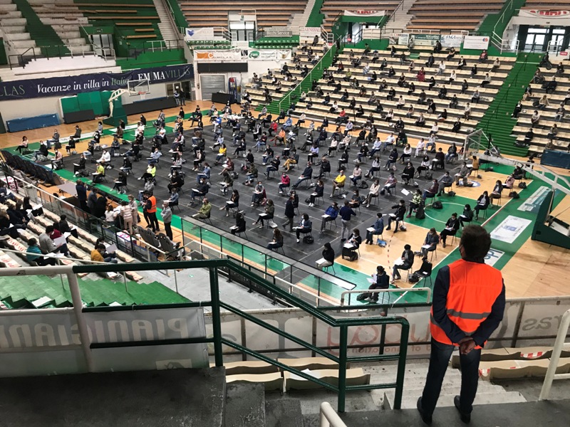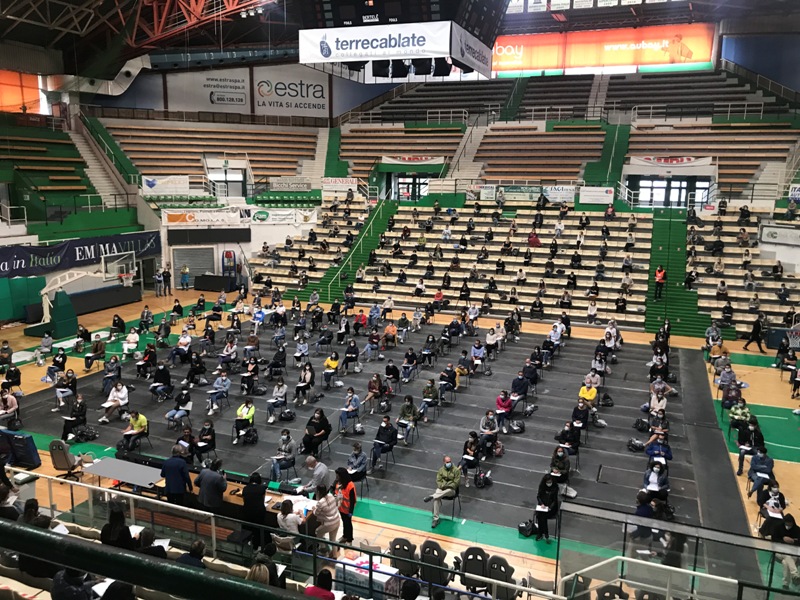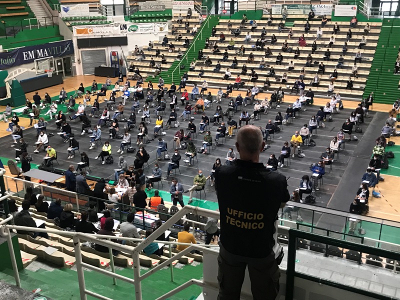 L'appuntamento, diviso in tre turni per accogliere i candidati iscritti, è iniziato alle 9 e si è concluso alle 19. Gli ingressi in entrata ed uscita, la registrazione in otto punti di presidio e l'assegnazione del posto singolo all'interno del PalaSport hanno permesso di non creare assembramenti, una perfetta fluidità, e lo svolgimento delle prove in piena sicurezza e conformità.