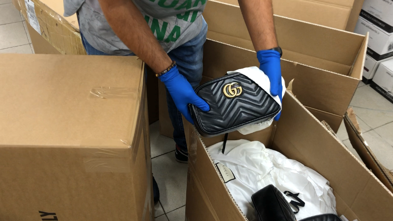 Nel corso delle attività, durate oltre un anno e mezzo, sono stati sequestrati complessivamente più di 50.000 prodotti falsi, 500 metri quadrati di stoffa delle più note griffe dell’alta moda italiana e internazionale tra cui Gucci, Hermes, Louis Vuitton, Chanel, Prada, Yves Saint Laurent, Givenchy, Dior, Céline, Balenciaga e Ferragamo, oltre a macchinari per la stampa su pelle.