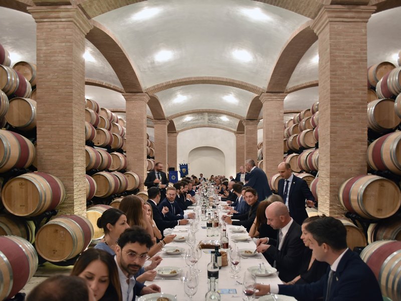 Il Presidente Tommaso de Sando ha aperto la conviviale di apertura all’interno della suggestiva cornice della Barricaia dell’Azienda Agricola Fèlsina, iniziando con l’aperitivo nella magica atmosfera creata dalla secolare oliveta, seguita dalla visita alle storiche cantine.