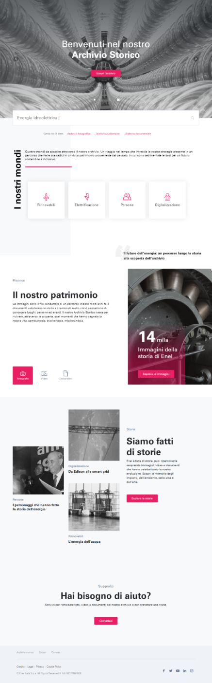 Con questa azione l’azienda digitalizza gran parte del proprio patrimonio archivistico mettendolo a disposizione di tutti: cittadini, ricercatori, imprese, pubbliche amministrazioni per ripercorrere insieme la storia dell’energia in Italia coinvolgendo anche le nuove generazioni. Il materiale presente nell’archivio è organizzato secondo un percorso narrativo che si articola in quattro aree tematiche: Rinnovabili, Elettrificazione, Persone e Digitalizzazione e privilegia la dimensione della scoperta.