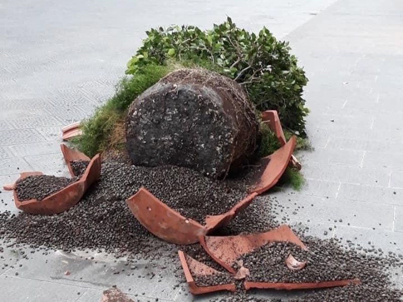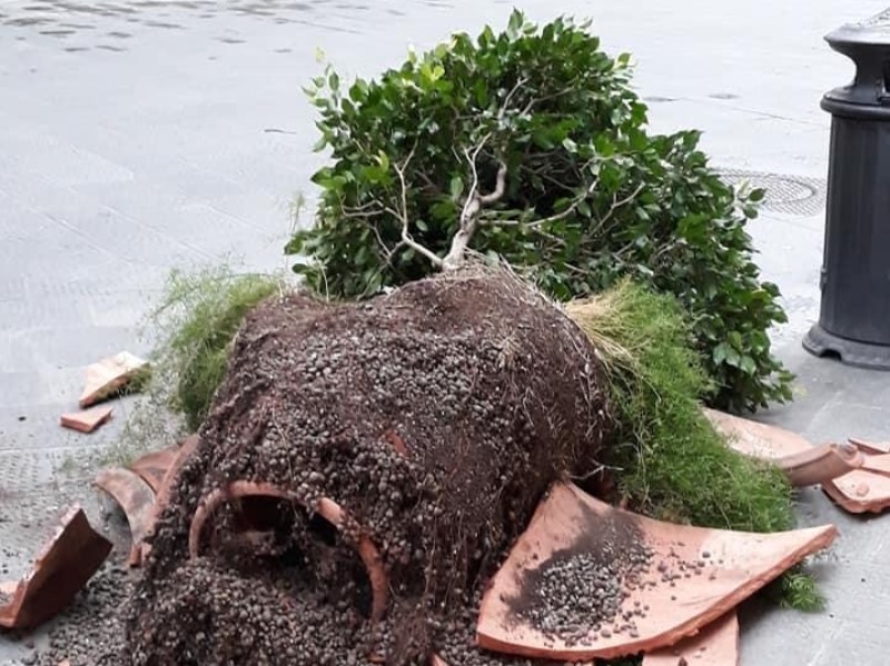 Due fioriere distrutte dai vandali in via Tornabuoni