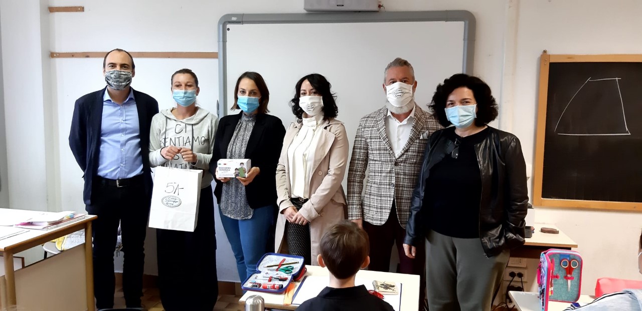 Ancora una volta le imprese del territorio dimostrano la propria generosità, soprattutto in questo periodo di emergenza sanitaria. Questa mattina, 1 ottobre, l'azienda “Dimensione Sicurezza” di via Montalese a Bagnolo ha consegnato alla scuola primaria “Margherita Hack” 1500 mascherine di tipo chirurgico, certificate secondo le normative vigenti e con una dimensione appositamente studiata per i bambini dai 6 ai 12 anni. Un gesto voluto dalla famiglia Ciampi per dimostrare la propria vicinanza alle necessità della scuola: « La scuola “Margherita Hack” è stata frequentata dai miei figli, Virginia e Lorenzo, ed ora dai miei nipoti e per tutti noi è un luogo importante di crescita, pieno di ricordi, al quale teniamo molto. - spiega il titolare di Dimensione Sicurezza, Enrico Ciampi- Si tratta di una piccola donazione, ma che abbiamo fatto con il cuore per dimostrare la nostra vicinanza alla scuola in questo periodo di emergenza». Le mascherine sono state consegnate da Enrico e Virginia Ciampi in tutte le classi della primaria “Hack” alla presenza della preside Maddalena Albano, dell'assessore alla pubblica istruzione, Antonella Baiano e del sindaco Simone Calamai, che dice:« Le nostre aziende rappresentano un valore aggiunto per il territorio. Questa è l'ennesima dimostrazione di generosità e vicinanza del mondo produttivo all'esigenze della comunità e della scuola e per questo ringrazio la famiglia Ciampi per il bel gesto».