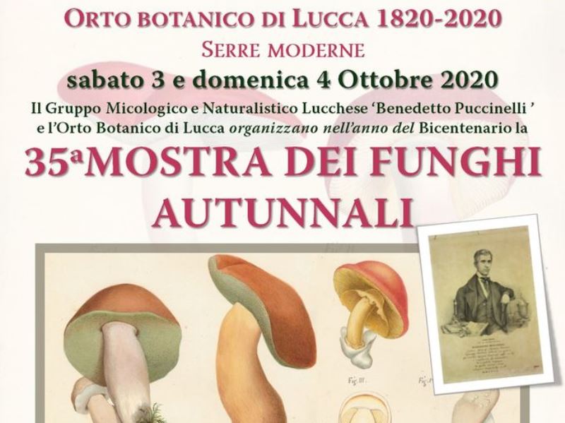 Fu proprio Benedetto Puccinelli - professore presso il Liceo Reale di Lucca e direttore dell’Orto dal 1834 al 1850 l'instancabile ricercatore a dare il più importante contributo della sua epoca alla conoscenza delle piante e dei funghi della Lucchesia. Accanto all'esposizione dei funghi raccolti e catalogati dai soci del Gruppo micologico lucchese sarà possibile ammirare alcune tavole dipinte ad acquerelli riguardanti i funghi della Lucchesia commissionate dal Puccinelli a corredo della sua opera rimasta inedita fino al a pochi anni fa. La mostra sarà visitabile sabato 3 ottobre dalle 12 alle 18:30 e domenica 4 ottobre dalle 10 alle 18:30.