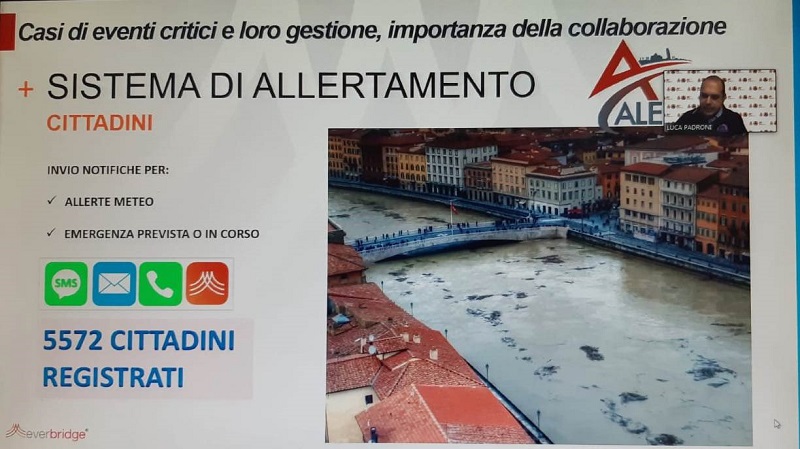 Il Comune di Pisa è stato invitato a partecipare a un seminario web dedicato al tema della gestione delle crisi per descrivere il suo modello organizzativo. Insieme a Luca Padroni, responsabile della Protezione Civile, erano presenti importanti organizzazioni pubbliche come Aeroporti di Roma e il Ministero della Difesa. Il titolo del webinar era “Come gestire un evento critico prima che diventi tragedia”.