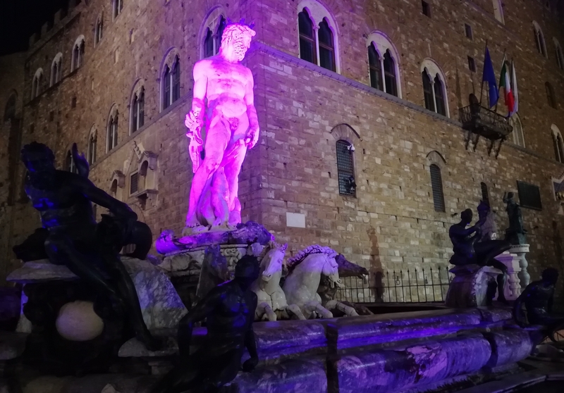 Il "Biancone" si è illuminato di rosa per una sera, a sostegno della campagna Nastro Rosa di Airc per la ricerca sul cancro. Nella notte di ieri, giovedì 1° ottobre, la Fontana del Nettuno in piazza della Signoria si è eccezionalmente accesa di rosa, in occasione della campagna Nastro Rosa della Fondazione Airc per la ricerca sul cancro. La speciale illuminazione è stata a cura di SILFI spa.