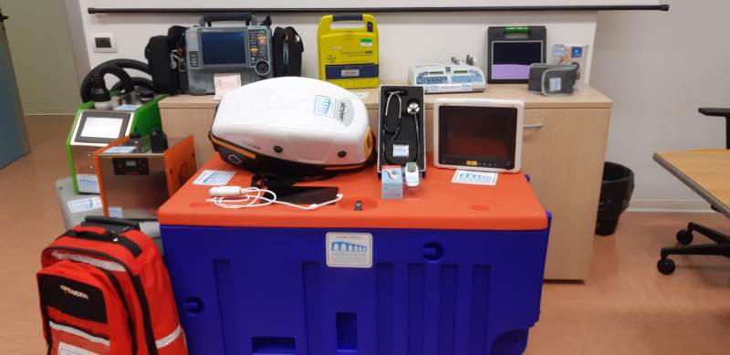 Si tratta di: 6 Ecografi palmari completi di due sonde ciascuno; 8 Monitor Defibrillatori completi di sistema di trasmissione dell'elettrocardiogramma alla Centrale Operativa 118;2 Ventilatori Polmonari da trasporto; . 2 Massaggiatori automatici.; 2 barelle per il trasporto di pazienti infetti in alto bio contenimento; 2 pompe siringhe da infusione; 3 Sistemi di Sanificazione ambientale; 14 casse per il trasporto materiale sanitario in occasione di maxiemergenze; 2 Sistemi di Monitoraggio; 20 rilevatori temperatura corporea ad infrarossi.; oltre a 2 zaini, sfigmomanometri e fondendoscopi e vari Dispositivi di Disposizione Individuale.