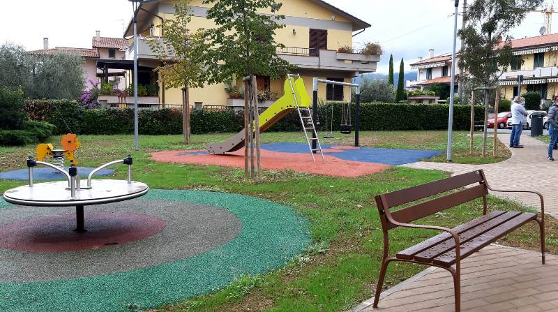 Il camminamento consente anche l'accesso all'area verde alle persone con disabilità, rendendo lo spazio veramente fruibile da tutti. Il restyling del giardino ha visto anche il completo rifacimento anche l'area giochi per bambini con l'installazione di nuovi giochi un'altalena, uno scivolo, alcuni giochi a molla e uno a rotazione.