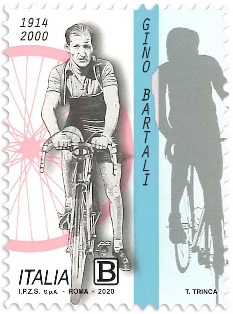 Poste Italiane comunica che oggi 3 ottobre 2020 viene emesso dal Ministero dello Sviluppo Economico un francobollo appartenente alla serie tematica “lo Sport” dedicato a Gino Bartali, nel 20° anniversario della scomparsa, relativo al valore della tariffa B pari a 1,10€. Tiratura: quattrocentomila esemplari. Foglio da quarantacinque esemplari.