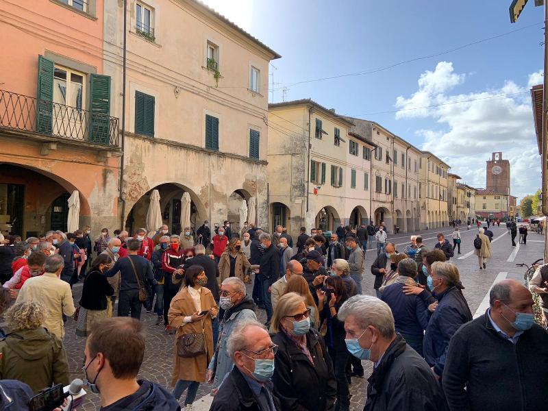 Il ballottaggio è un momento singolare, uno spazio politico che richiama profani di seggi e percentuali, persone di tutte le età, semplici curiosi, affezionati e non. Assistere ad un ballottaggio è un po' come calarsi in una finale sportiva tanto attesa: i grandi schermi riportano i numeri che crescono o scendono in base agli scrutini delle sezioni cittadine, accompagnati da esultanze o, dipende, esclamazioni pessimistiche e di delusione. Un po' come ai rigori, si crea una sfida a due, un testa a testa che riparte da zero dopo il primo turno, come un ultimo match tra le squadre preferite o comunque, che richiamano l'interesse di molti. Gruppi di persone si raccolgono intorno alle sedi dei comitati, aspettano il candidato, colui che appoggiano, tanto per tirargli una pacca sulla spalla, salutarlo da lontano e perché no, intonare qualche coro motivazionale. La storia dunque si ripete e anche oggi, a Cascina, la vittoria di Michelangelo Betti è stata inserita in questo contesto. Oltre a molti cittadini, amici o semplici passanti che si muovevano in centro tra applausi e 'Bella Ciao' erano presenti anche figure dal mondo della politica come i consiglieri regionali Alessandra Nardini e Antonio Mazzeo, i sindaci del cuoio Giulia Deidda (Santa Croce sull'Arno), Simone Giglioli (San Miniato) e Gabriele Toti (Castelfranco di Sotto) e altri. (Qui commenti e risultati)