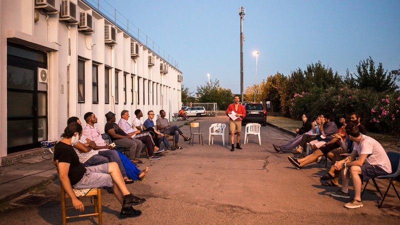 "Avevamo programmato questo progetto a marzo ma siamo stati bloccati dal lockdown. Inizialmente doveva essere un laboratorio teatrale che portava a un'azione urbana, ma man mano che siamo andati avanti è cambiata l'idea" hanno detto Francesco Mugnari e Martina Capezzone di Tra i Binari. "Volevamo capire chi sono queste persone che frequentano il centro notturno. Ci sono diverse storie personali, di vita, che hanno a che fare con uno scontro con la realtà schiacciante. Portare una videocamera nel centro è scomodo, non è facile per molti dire di essere in un centro notturno".