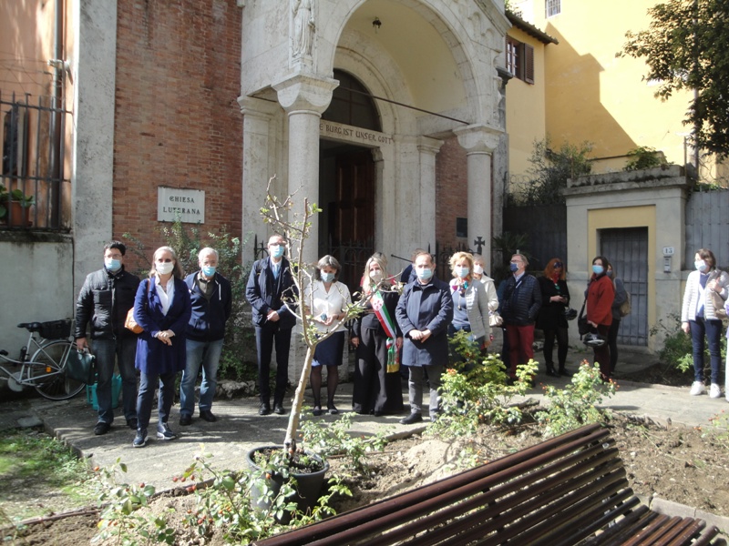 È stato messo a dimora nel giardino Martin Lutero un albero di melo donato dalla Comunità evangelica Luterana di Firenze. Alla piantagione, ieri in lungarno Torrigiani, erano presenti gli assessori all’Ambiente Cecilia Del Re e ai rapporti con le confessioni religiose Alessandro Martini e i rappresentanti della Comunità luterana. “Abbiamo accolto la donazione della Comunità luterana di Firenze per celebrare l’insediamento della nuova pastora Annette Herrmann-Winter - hanno detto gli assessori Del Re e Martini- e abbiamo messo a dimora un albero di melo nel giardino Martin Lutero, davanti alla chiesa luterana di Lungarno Torrigiani. Un modo per rinnovare non solo lo spirito di accoglienza e condivisione che anima i rapporti dell’Amministrazione con le confessioni religiose, ma anche la bellezza di questo spazio verde che si affaccia sull’Arno”.