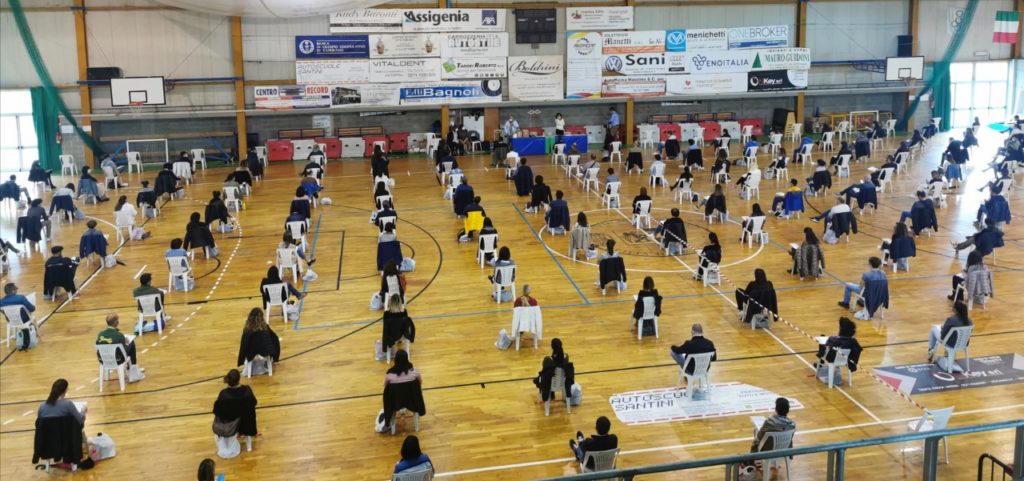 Per l'accesso al palazzetto i candidati hanno usufruito dei due accessi separati creati per l'occasione, evitando così assembramenti, mentre all'interno è stata assicurata l'igienizzazione degli ambienti e dei bagni prima e dopo la prova e anche tra le due sessioni.