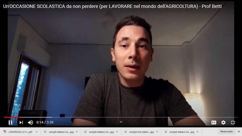“Un’occasione scolastica da non perdere per lavorare nel mondo dell'agricoltura e contrastare il fenomeno, purtroppo presente anche in Toscana, legato alla dispersione scolastica”. Così, tra videolezioni sulle origini della letteratura italiana, metodi che aiutano a ricordare meglio ciò che si studia e le prime nozioni di geografia, il prof Betti, youtuber scolastico di origine fiorentina, trova lo spazio per caricare sul suo canale una nuova finestra web e illustrare le opportunità di AgriforChianti.