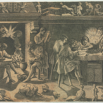 Nella mostra sono poste in dialogo con la grande tela altre opere che illustrano la pratica dello studio a lume di candela, la concentrazione notturna sul lavoro di concetto, come il San Girolamo con due angeli di Bartolomeo Cavarozzi (1617), e il disegno di Enea Vico, L’Accademia di Baccio Bandinelli (1560). Completa l’esposizione l’ottocentesco Orologio da mensola in forma di gabbietta, oggetto prezioso in prestito dagli Appartamenti Imperiali e Reali di Palazzo Pitti, la cui forma evoca direttamente l’uccelliera da cui è stata estratta la colomba protagonista, suo malgrado, dell’esperimento raccontato da Wright of Derby nel suo quadro.