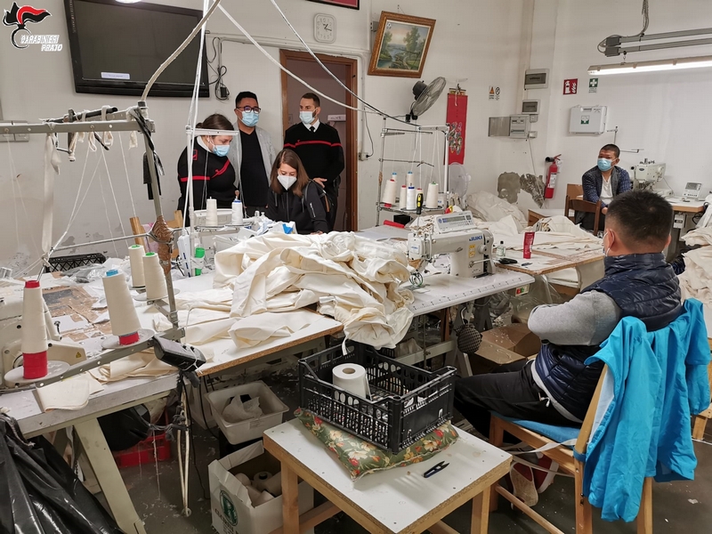 Durante le perquisizioni sono stati trovati sul posto di lavoro 25 operai, di cui 4 erano clandestini dalla Cina. I lavoratori sono stati interrogati come parti lese nel procedimento per conoscere le dinamiche dell'azienda, poi sono stati a loro volta deferiti in stato di libertà all'autorità giudiziaria per 'Soggiorno illegalenel territorio dello Stato'