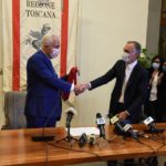 La cerimonia si è svolta nella sala Pegaso di Palazzo Strozzi Sacrati in piazza del Duomo a Firenze, sede della presidenza della Regione. “Martini nel 2010 mi donò una cravatta e anche io voglio fare altrettanto – spiega Rossi -: una cravatta rossa, colore che in questa regione ha una storia ed ha avuto un suo peso. Un elemento di continuità”. Giani ringrazia. “Enrico – si sofferma – passerà alla storia come un grande presidente della Toscana. Ha portato avanti questi ideali con grande capacità. Lavorerò per lo sviluppo dei valori che Enrico mi consegna attraverso il suo dono”. Poi si volta dietro, dove campeggia steso il gonfalone della Toscana, ne spiega la storia e rilancia. “Da mille anni i colori della regione sono il rosso e il bianco. E poi c’è il Pegaso, che ci ricorda il Comitato di liberazione nazionale ed ha dunque un alto valore simbolico. La mia intenzione è di rappresentare tutta la Toscana”. Nel suo studio farà appendere un ritratto di Cosimo I dei Medici e uno di Pietro Strozzi. “Due personaggi che in vita hanno litigato molto – scherza Giani – ma che ora dovranno idealmente collaborare”.