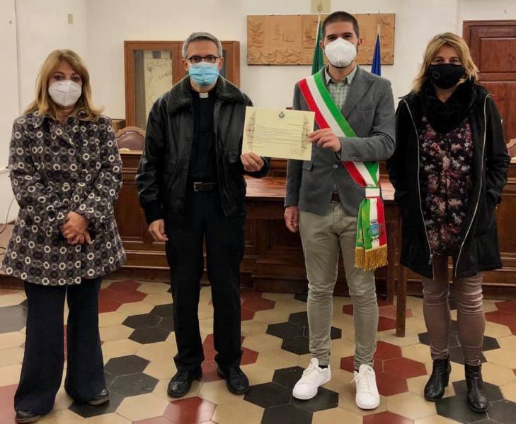 Il sindaco Gherardini saluta don Giuseppe Volpi, in partenza per Fauglia