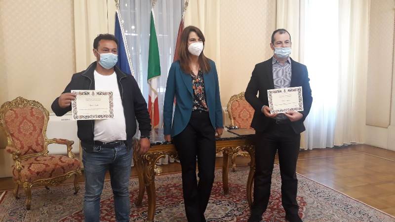 L'assessora all'Ambiente Giovanna Cepparello ha ricevuto nella Sala Cerimonie di Palazzo Comunale i due concittadini Paolo Vesperini e Saimir Dashi, che si sono prodigati volontariamente per la raccolta in mare di rifiuti e detriti dopo l'ultima violenta mareggiata. Ai due volontari è stata consegnata una pergamena come ringraziamento da parte dell'Amministrazione comunale a nome della città.