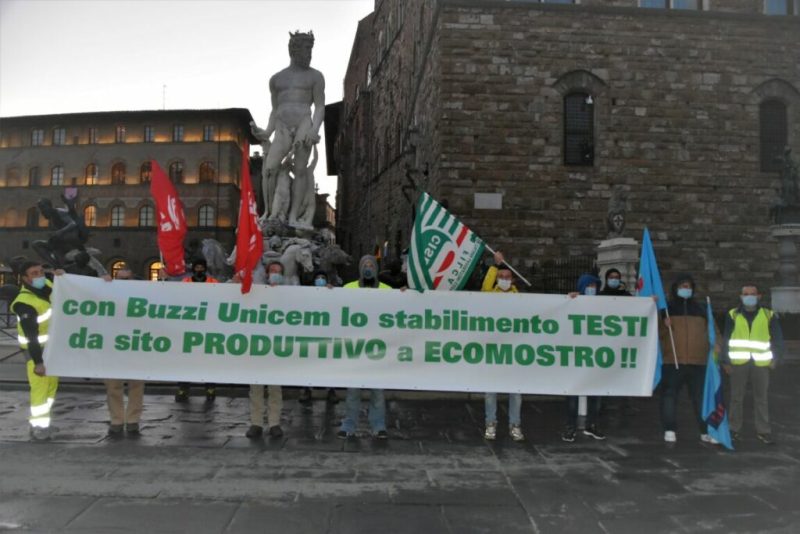 Il cementificio di Testi ha resistito alla crisi del settore delle costruzioni dal 2008 ad oggi attraverso procedure di licenziamento collettivo, Casse integrazioni e passaggi di proprietà (ora appartiene al Gruppo Buzzi Unicem). Dallo scorso aprile, per l’emergenza Covid, si usano gli ammortizzatori sociali. I sindacati, che da tempo ormai sono in agitazione, temono una smobilitazione, visto che “da marzo i lavoratori sono in Cigo Covid-19, saremmo dovuti ripartire a maggio come hanno fatto tutte le altre cementerie di Buzzi Unicem, invece i vertici della società hanno deciso di prolungare la cassa integrazione, e dirottare i nostri migliori clienti in altre fabbriche di loro proprietà. Durante il lock down la società ha pensato esclusivamente ai propri interessi, ha svuotato tutti i silos sia di cemento sia di klinker, ha trasferito il nostro direttore in un altro stabilimento senza rimpiazzarlo, tutti i capi tecnici sono stati spostati ‘temporaneamente’ in altre fabbriche. Ultimamente assistiamo increduli alla disinvoltura con la quale vengono portate via attrezzature dalla fabbrica, asserendo che, quando le attività riprenderanno, queste ultime saranno riportate in stabilimento. Anche alcuni mezzi di movimentazione terra sono stati trasferiti in altri siti produttivi, naturalmente tutto questo senza mai informare prima i lavoratori”. I sindacati denunciano anche i rischi ambientali della situazione: “Cosa accadrà una volta che Buzzi Unicem chiuderà la struttura, rimarrà lì a decomporsi nei decenni a venire, inquinando il terreno e le falde acquatiche, come è accaduto per altre realtà simili? O sarà completamente bonificata, in modo che la natura del luogo torni a riprendersi quello che un tempo era proprio?”.