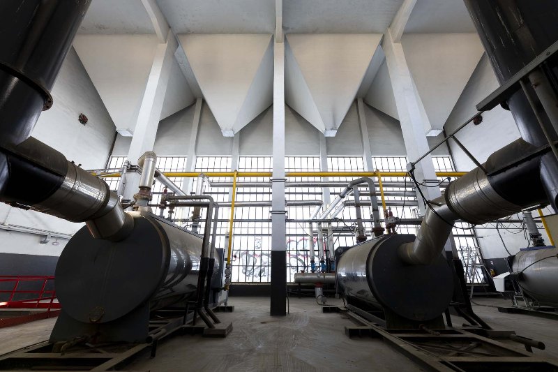 chiusa al pubblico e tuttora attiva in seguito alla riconversione a gas, la Centrale termica della Stazione di Santa Maria Novella, collocata a lato dei binari, è stata edificata tra il 1932 e il 1934 su progetto di Angiolo Mazzoni con l’approvazione da parte del Ministero delle Comunicazioni, che aveva espresso l’esigenza di costruire un’unica ed efficiente centrale per il riscaldamento dell’intera stazione. Il complesso, dall’estetica “macchinista”, è composto da due corpi di fabbrica: il primo, un grande parallelepipedo riconoscibile dalla presenza di quattro fumaioli corrispondenti alle quattro caldaie interne alla struttura, destinato a bruciare il carbone per il riscaldamento della stazione e dei treni; il secondo, costituito da una torre cilindrica culminante in una grande vetrata, adibito a cabina per il comando degli scambi e dei segnali. All’interno, oltre alla strumentazione odierna, sono visibili le attrezzature sopravvissute che testimoniano il ciclo dell’utilizzo del carbone, dalle tracce del sistema di carelli all’elevatore verticale a tazze; si nota, inoltre, la cura riservata dall’architetto nelle scelte estetiche e funzionali dei materiali e negli accostamenti cromatici: il rosso dell’intonaco “Terranova”, le piastrelle in gres nero (per la facile pulizia di ambienti destinati al carbone), le porte in ferro con “occhio di spia” e maniglie in lega, le vetrate sul fronte posteriore che affaccia sui binari realizzate in Termolux