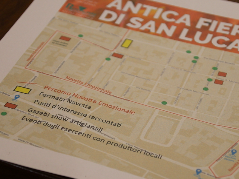Una ricca e articolata organizzazione sarà dunque quella della Fiera di San Luca. Una volta giunti in area Expo sarà consegnata la mappa per raggiungere con facilità le iniziative posizionate in vari punti di Pontedera. Sulla cartina si possono trovare segnalati in rosso i gazebi degli show artigianali dove gli artigiani, circa 15, metteranno in mostra le loro abilità, in verde gli eventi degli esercenti con i produttori locali e dunque in ambito degustazioni, in giallo le fermate della navetta. Esatto, ci sarà una navetta che però non sarà il classico trasporto da zona mercato al centro, ma sarà un viaggio nella storia della città. Baldini e Quirici saranno infatti i ciceroni del viaggio dentro a Pontedera, percorso dal mezzo sull'itinerario delineato dalla mappa, che sosterà nei punti d'interesse che verranno raccontati. La navetta emozionale, così si chiama, non solo potrà fornire un'infarinatura su aneddoti, arte e storia di Pontedera, ma introdurrà al percorso di artigianato ed enogastronomia dei locali del centro creando un legame tra le tue aree cittadine.