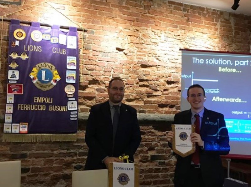 A ospitare una lezione dello studente ormai famoso in tutta Italia il Lions Club Ferruccio Busoni di Empoli, durante una conviviale alla Cucina Sant'Andrea. Saverio Crea presidente Lions Club Ferruccio Busoni, ha presentato l’ospite speciale per la conviviale del 15 ottobre, Giulio Deangeli.