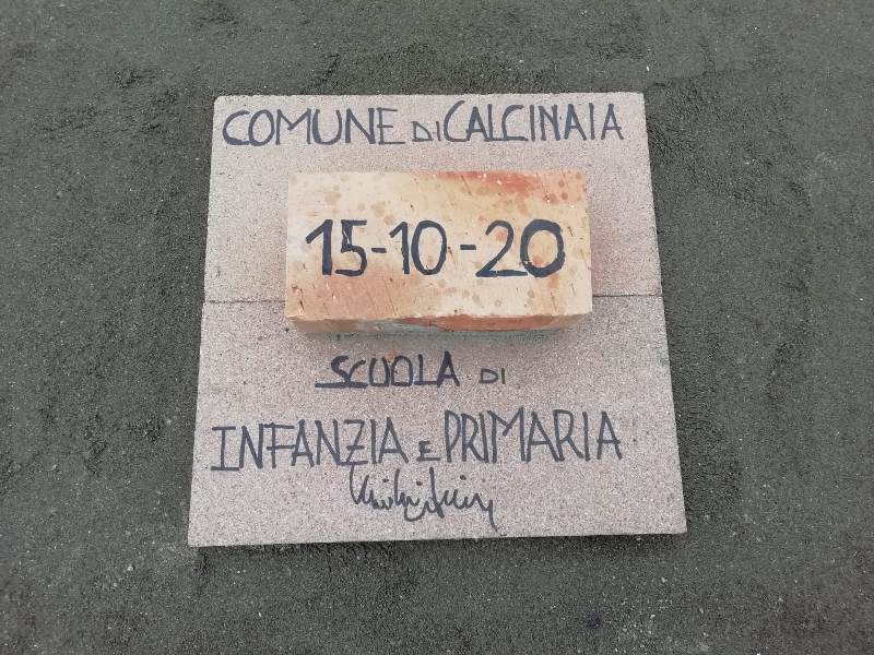 Posato in una giornata uggiosa, ma considerate le previsioni decisamente benevola, il primo mattone del nuovo plesso scolastico di Calcinaia che radunerà la Scuola dell’Infanzia, la Scuola Primaria e la Direzione Didattica.