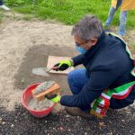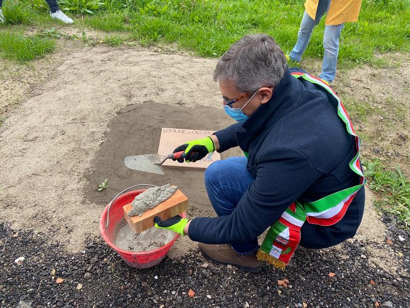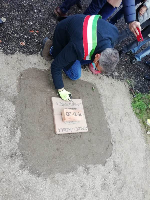 Infine l’uscita “sul campo” ovvero sul terreno dove sorgerà il nuovo istituto con il Sindaco, Cristiano Alderigi che con malta e cazzuola ha cementato la prima pietra della nuova scuola. Mattone su cui ha apposto anche la sua firma. Poi le foto di rito e il saluto a tutti coloro che hanno voluto essere presenti a questo importante evento.