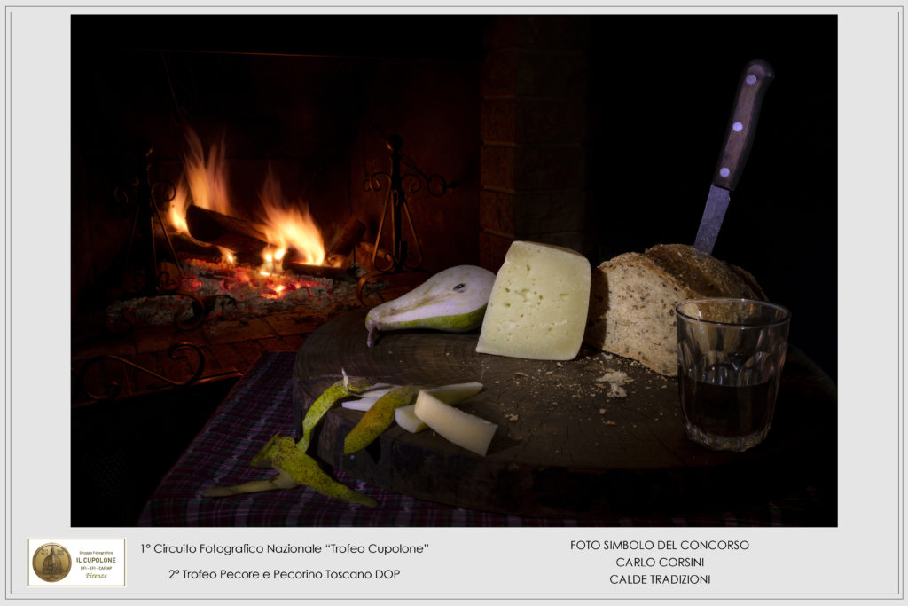 Le Foto premiate. Un gregge al pascolo, una pecora che, dolcemente, posa la sua zampa sul dorso di un cane che si sta riposando, ma comunque è attento a proteggere e a non perdere di vista il suo gregge. L’immagine di Giulio Montini, medaglia d’oro della categoria “Pecore e Pecorino”, accoglie al suo interno moltissimi simboli e significati. Ancora, la semplicità racchiusa in una fetta di formaggio con un bicchiere di vino e una fetta di pane, vicino al caldo fuoco di un camino. Tutto questo è rappresentato nell’immagine di Carlo Corsini, voluta dalla giuria de “Il Cupolone” come foto simbolo della categoria dedicata al Pecorino Toscano DOP.