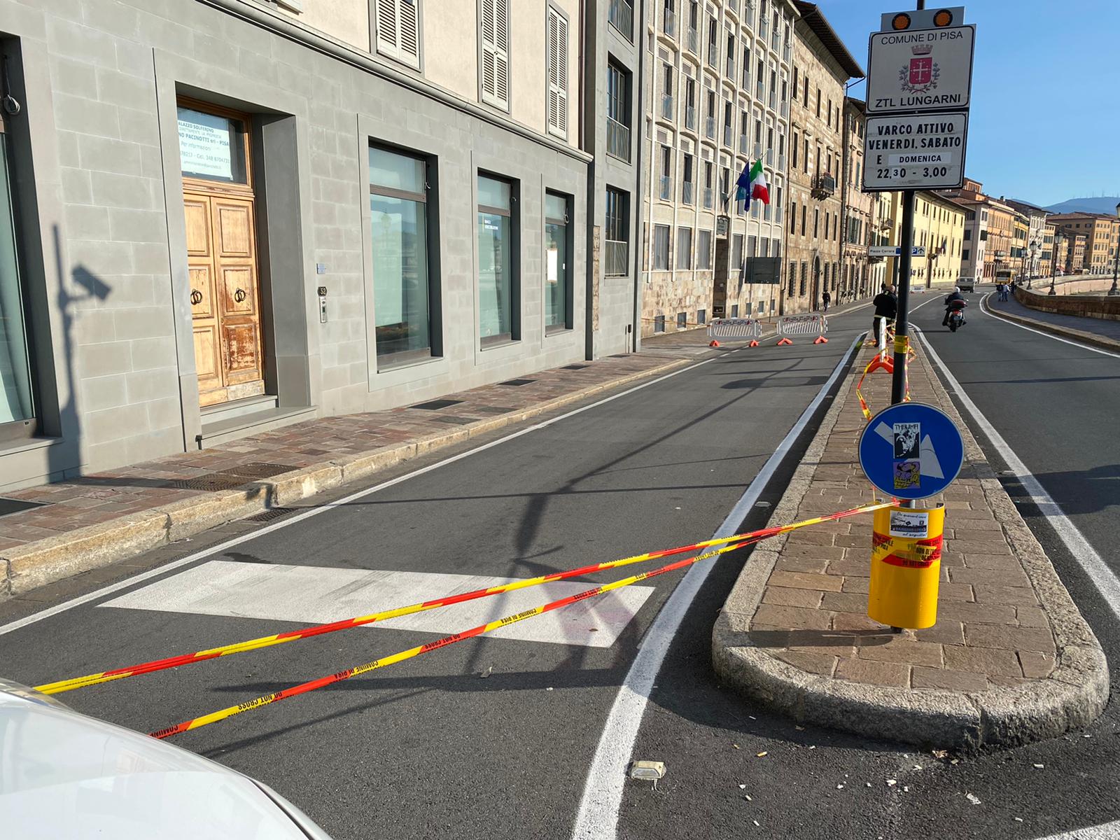 Nella giornata di ieri, domenica 18 ottobre, la Protezione Civile ha provveduto a chiudere al traffico Lungarno Pacinotti, nel tratto compreso tra via Santa Maria e piazza Solferino. Il provvedimento si è reso necessario per motivi di sicurezza visto che erano cadute alcune parti del rivestimento in pietra del palazzo ex Enel. Durante la giornata di oggi (19 ottobre) dovrebbero essere ripristinati i lavori della copertura del palazzo e quindi, una volta conclusa l’operazione, riaperto il tratto di strada in sicurezza.