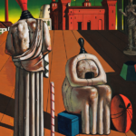 Un esempio potente lo ritroviamo nel dipinto Le muse inquietanti, dove de Chirico fissa per sempre una concezione del mondo e del rapporto tra l’uomo e la realtà. Il mondo, attraverso la metafora della città di Ferrara, è un insieme di cose dominate da una fatalità illogica, un assurdo mistero a guardia del quale stanno controllori severi che solo l’intuizione poetica può penetrare.