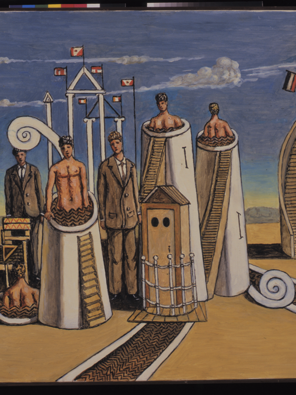 Un esempio potente lo ritroviamo nel dipinto Le muse inquietanti, dove de Chirico fissa per sempre una concezione del mondo e del rapporto tra l’uomo e la realtà. Il mondo, attraverso la metafora della città di Ferrara, è un insieme di cose dominate da una fatalità illogica, un assurdo mistero a guardia del quale stanno controllori severi che solo l’intuizione poetica può penetrare.