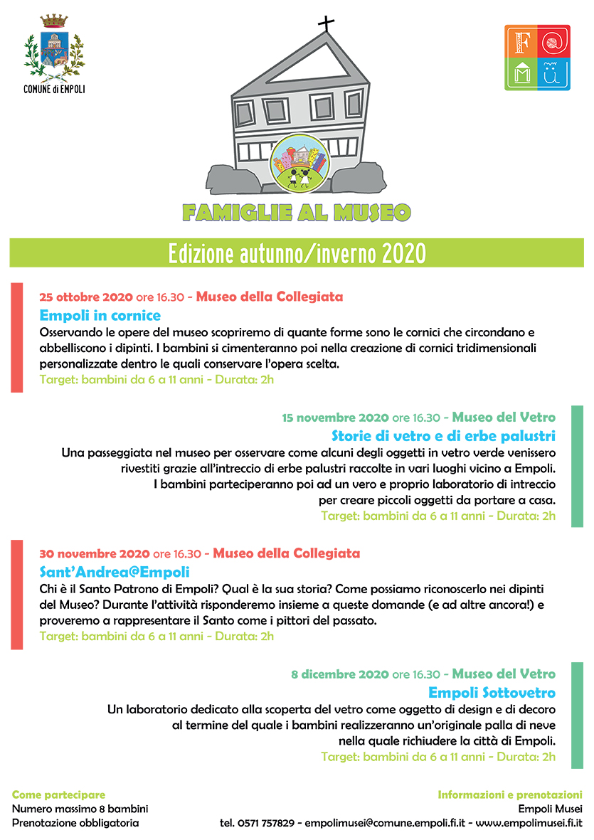 I Musei di Empoli non si fermano! Anche quest’anno prende il via la rassegna “Famiglie al Museo” dedicata alle famiglie con bambini. Quattro gli appuntamenti in programma per scoprire i tesori d’arte del Museo della Collegiata di Sant’Andrea e ripercorrere la storica tradizione della lavorazione del vetro verde al Museo del Vetro.