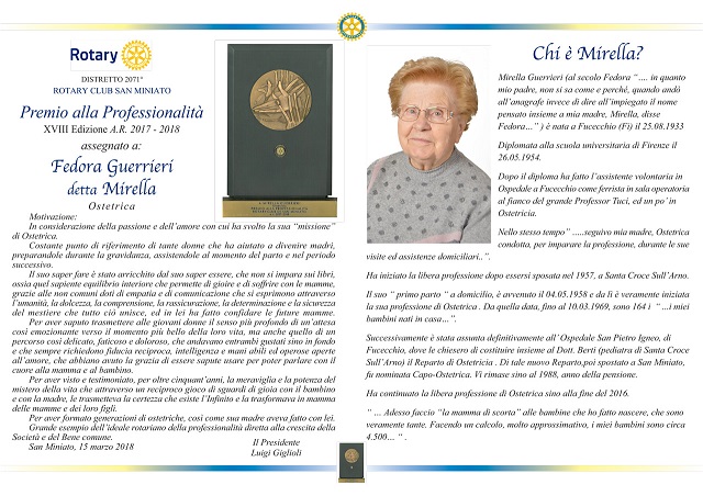Stavolta posso davvero dire, senza retorica, che con Mirella se ne va un pezzetto di noi, perché Mirella ha fatto nascere intere generazioni di bambine e bambini, me compresa: per oltre sessanta anni ha portato avanti la sua carriera di ostetrica, accompagnando le donne del nostro paese nell’avventura più straordinaria della vita, l’esperienza del parto e del diventare mamme.