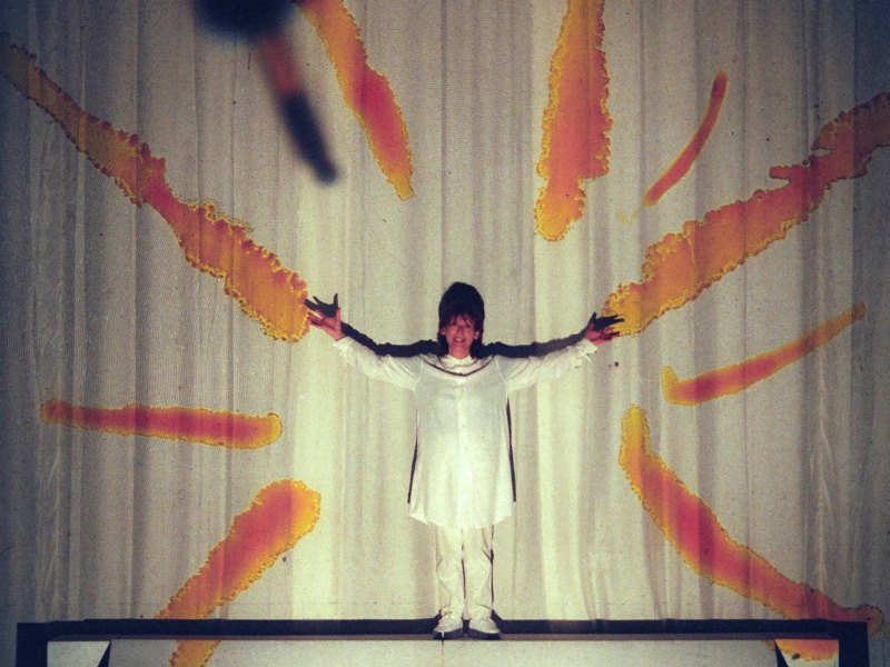 Una lavagna luminosa aiuta l’ attrice a raccontare questi grandi “fatti”, Sullo schermo/fondale si formano linee, segni, disegni, immagini, tutte realizzate in contemporanea da una disegnatrice, che sono di aiuto alla spiegazione/racconto, qualche volta la precedono, qualche volta la rendono poetica. Per tutti i bambini che una notte hanno aperto la finestra per guardare il cielo…