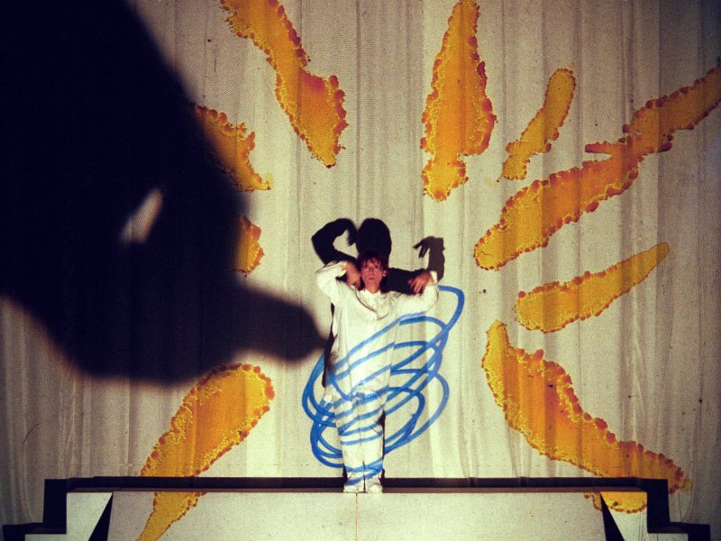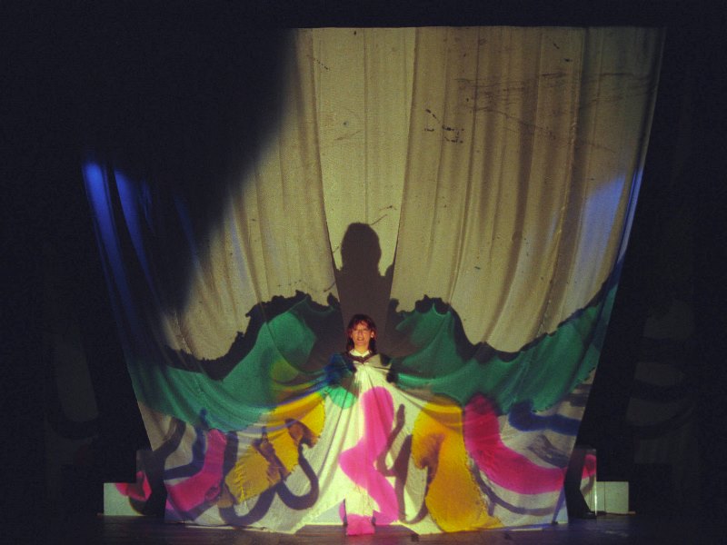 Una lavagna luminosa aiuta l’ attrice a raccontare questi grandi “fatti”, Sullo schermo/fondale si formano linee, segni, disegni, immagini, tutte realizzate in contemporanea da una disegnatrice, che sono di aiuto alla spiegazione/racconto, qualche volta la precedono, qualche volta la rendono poetica. Per tutti i bambini che una notte hanno aperto la finestra per guardare il cielo…