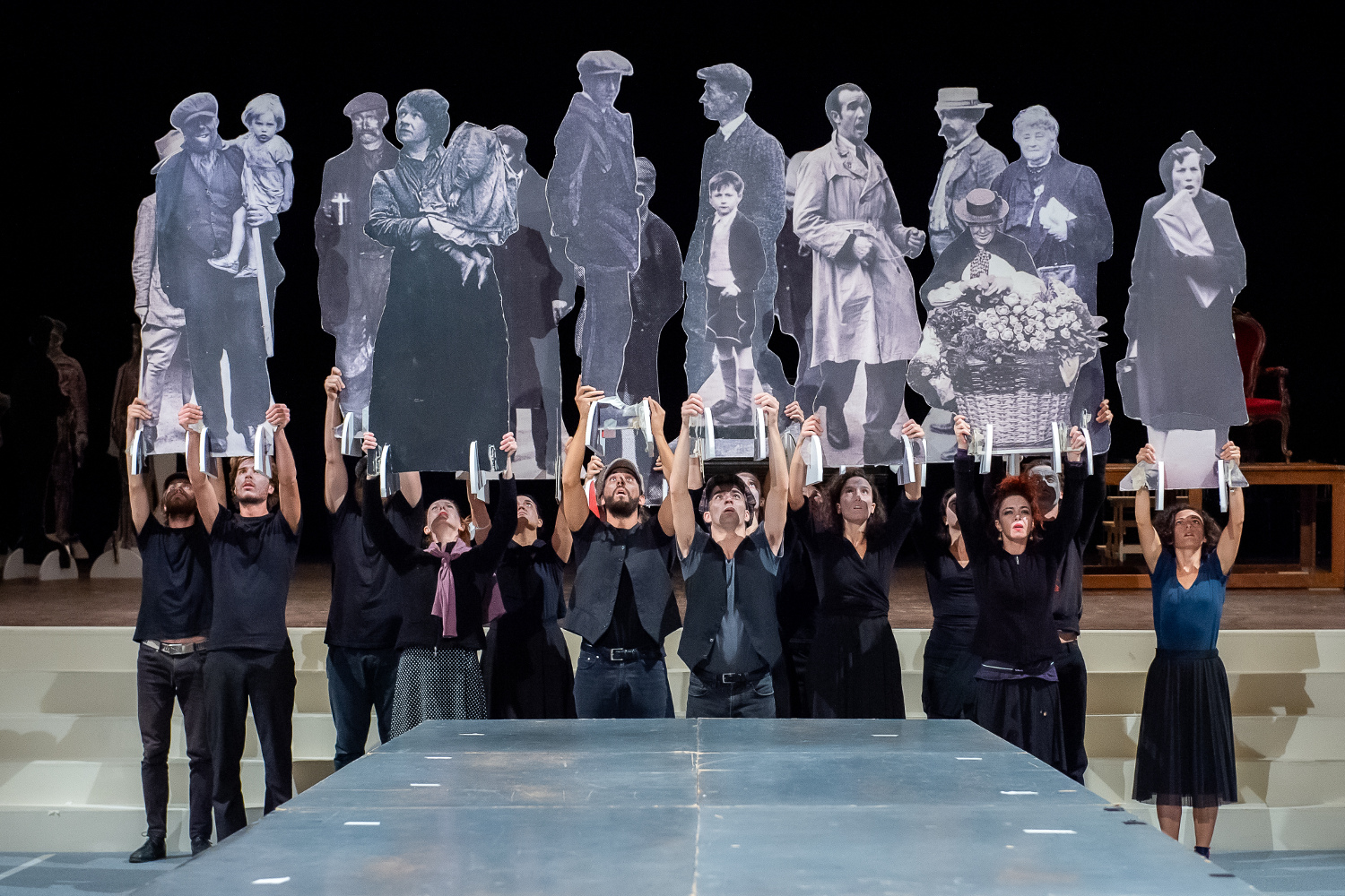 In una Pergola ridisegnata per l’occasione, va in scena l’ultimo dei racconti, The Dead (I Morti), e il dodicesimo, Ivy Day in the Committee Room (Il giorno dell’edera) dei quindici scritti da James Joyce agli inizi del Novecento sull’esistenza statica e alienata dei dublinesi di cui l’autore faceva parte. Spariscono le quinte e lo spettatore è immerso nella atmosfera grigia e fumosa di una Dublino in cui personaggi stanchi e sfiniti si trascinano nella vana speranza di trovare uno slancio, un sussulto di vita. È una collezione di epifanie, con una città che Joyce trasfigura in rivelazione di carattere religioso, per rendere manifesto ai suoi concittadini che essi si trovano al centro di una paralisi spirituale, corrotti e oppressi da regole inutili quanto crudeli.