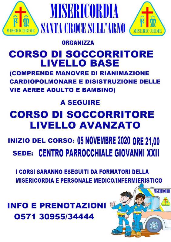 La Misericordia di Santa Croce sull'Arno, organizza il Corso di soccorritore Livello base e Livello avanzato. L'inizio dei corsi è fissato al 5 novembre.