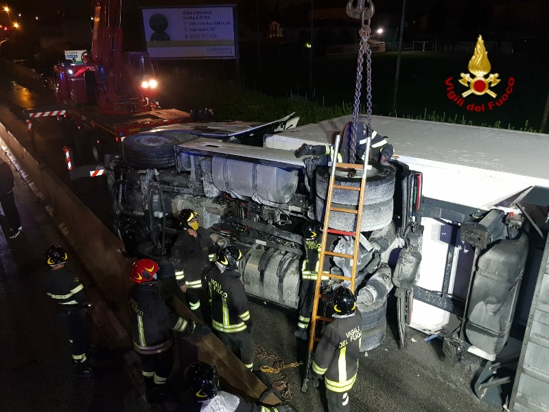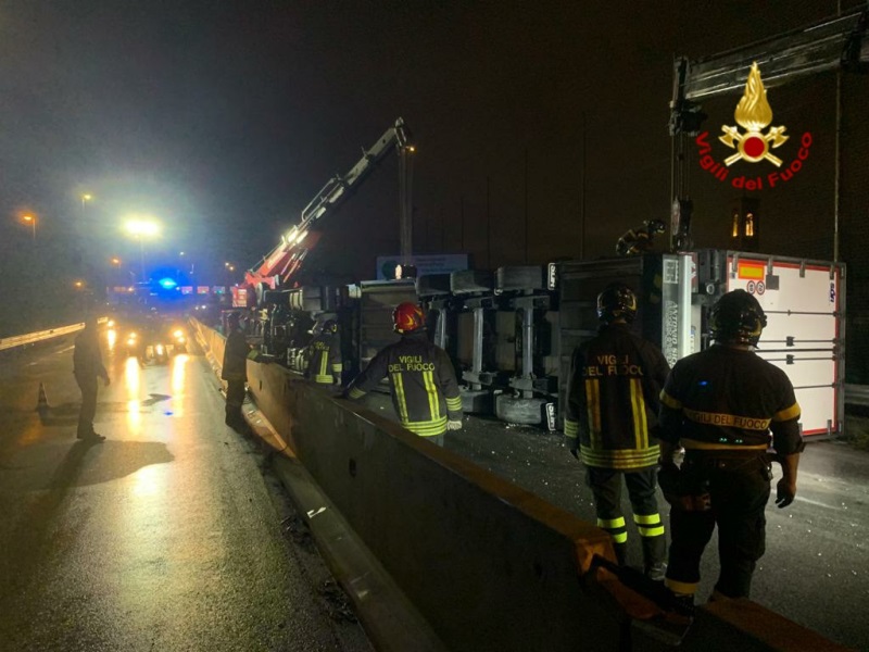 I vigili del fuoco di Prato sono intervenuti questa notte, poco prima delle 2, nel viale Leonardo da Vinci, nei pressi del ponte Lama, dove un mezzo pesante, per cause da accertare, si era ribaltato. Non si registrano feriti.