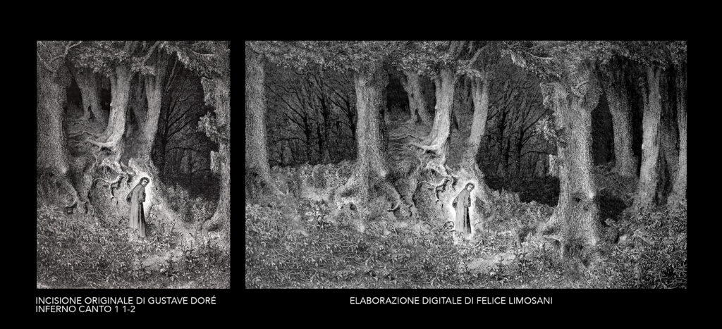 Nel solco della tradizione iconografica nata immediatamente dopo l’uscita della Commedia nel 1320 – che nei secoli ha visto i più grandi artisti impegnarsi per dare la loro visione del poema – nel diciannovesimo secolo Doré ha creato un modello di rappresentazione che ha modificato l’interpretazione successiva del viaggio dantesco. Dante. Il Poeta Eterno porta avanti questa tradizione, riconoscendone la storia e facendo ulteriori passi avanti in questo percorso. Ancora una volta, quindi, Dante si trova a essere riformulato in modo innovativo e il fatto che il suo messaggio universale possa ancora declinarsi in termini nuovi, attualizzandosi ulteriormente, è il chiaro segnale della sua inesauribile vitalità. Da sempre Dante è percepito come qualcosa di strutturalmente “altro” da noi, e proprio questa alterità è il motivo dell’interesse nei confronti suoi e della sua opera. Grazie all’incontro con questi mondi “altri” – quello di Dante, quello di Dorè e ora quello di Limosani, che superando il concetto obsoleto di opera unica, originale o copia, trasforma le opere del passato in organismi viventi e vitali soprattutto per le nuove generazioni – Dante. Il Poeta Eterno ha l'obiettivo culturale e sociale di restituire alla letteratura e all’arte il potere trasformativo che le è proprio, offrendo chiavi innovative per sperimentare la Commedia e aprendo nuove modalità di concepire il rapporto con l’opera d’arte.
