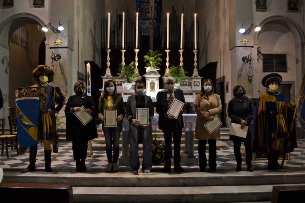 Sabato 24 ottobre, la Contrada Capitana Porta Raimonda ha dato il via alle celebrazioni del suo protettore, San Teofilo da Corte, seppur con un programma ridotto a causa delle stringenti normative in tema di anti-contagio. Il pomeriggio inaugurale della settimana dedicata al Santo, è cominciato come di consueto con l’apertura della mostra d’arte alla presenza del Sindaco Alessio Spinelli e di Don Andrea Cristiani. Quest’anno, la Contrada ha scelto di affidare lo spazio espositivo al pittore Giancarlo Caponi, che oltre ad essere un componente del Collegio dei Maggiorenti della Contrada, ha anche dipinto il cencio del 1993, che custodiamo gelosamente nella sede di via Giordano. La mostra, intitolata “La Penultima Cena”, sarà visitabile anche prima e successivamente alla Messa del 30 ottobre. Durante la S. Messa, animata dalla Corale di Santa Cecilia, la Contrada, ha omaggiato la Chiesa dei Frati con una nuova stola, dipinta e decorata dal Maestro Andrea Meini. Come da rituale della prima giornata di celebrazioni, il Collegio dei Maggiorenti ha conferito il “Premio San Teofilo 2020”. Questo premio, instituito con la ripresa dei festeggiamenti del Santo nel 2018, è dedicato a contradaioli meritevoli che, attraverso la loro opera nel campo della cultura, delle arti, delle scienze, del lavoro, della politica, della filantropia, dello sport e delle attività in campo contradaiolo, si sono particolarmente distinti, dando lustro alla Contrada, ovvero abbiano reso un servizio alla comunità e siano pertanto divenuti degni di essere segnalati al pubblico encomio. Quest’anno il Collegio dei Maggiorenti, insieme al suo rettore Claudio Zingoni, ha deciso di assegnarlo a Rino Marmugi, contradaiolo e scrittore che, grazie ai suoi libri ci lascia un’eredità inestimabile di racconti ambientati molti anni fa nel nostro paese, ma soprattutto nel nostro territorio, già importante comunità fucecchiese prima ancora di essere una Contrada del Palio. Da sottolineare che tutti i proventi della vendita delle opere di Marmugi, sono stati donati in beneficenza. Il Collegio dei Maggiorenti, valutata la particolarità del momento che stiamo attraversando ha deciso di conferire, con una menzione speciale, un secondo “Premio San Teofilo”, a tutte le infermiere e gli infermieri della Contrada, che hanno combattuto e stanno combattendo contro il Covid-19. Per l’occasione, un quadro del Santo, dipinto dal pittore Andrea Meini, è stato donato all’ospedale San Giuseppe e sarà esposto proprio nella terapia intensiva destinata ai pazienti Covid. In seguito al nuovo DPCM di domenica 25 ottobre, il concerto previsto per la sera del 29 ottobre è stato annullato. I festeggiamenti in onore di San Teofilo, si concluderanno come di consueto la sera del 30 ottobre, dove S.E. il Vescovo, celebrerà la Messa Solenne alle 21.15.