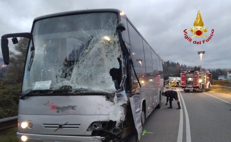 Un 26enne è rimasto gravemente ferito in uno scontro frontale frontale avvenuto questa mattina alle 6.10 tra un autobus di linea, vuoto al momento dell'incidente, e un furgone, lungo la statale 70 della Consuma, nel comune di Poppi, nell'Aretino.