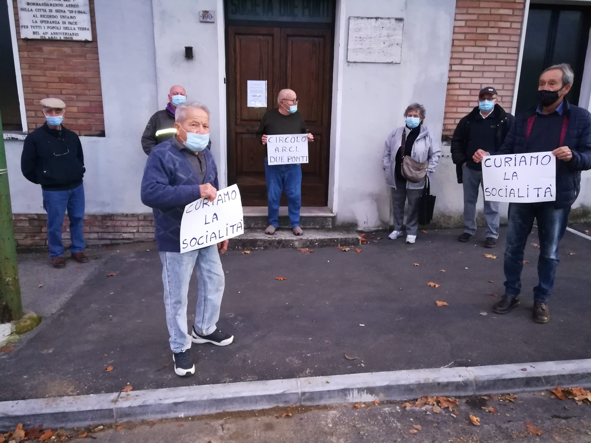 L’Arci provinciale di Siena, con i suoi 95 circoli chiusi nei giorni scorsi a seguito dell’ultimo DPCM per contenere la diffusione del Covid-19, lancia l’appello “Curiamo la socialità” alle istituzioni e ha organizzato presidi nella giornata di oggi, venerdì 30 ottobre, in diverse zone della provincia. L’iniziativa, promossa dall’Arci a livello nazionale, ha preso il via questa mattina e andrà avanti nel pomeriggio coinvolgendo i circoli di Abbadia San Salvatore, Colle di Val d’Elsa, Guazzino (Sinalunga), Montallese (Chiusi), Piazze (Cetona), Montepulciano, Murlo, San Lorenzo a Merse e Scalvaia (Monticiano), Sarteano, Siena, Sinalunga, Sovicille, Torrenieri (Montalcino), Trequanda e Ulignano (San Gimignano). Questa mattina, inoltre, la presidente dell’Arci provinciale di Siena, Serenella Pallecchi, ha consegnato al Prefetto di Siena, Maria Forte, l’appello, che è già stato sostenuto dall’onorevole Susanna Cenni e dai sindaci dei Comuni di Abbadia San Salvatore, Castellina in Chianti, Castelnuovo Berardenga, Cetona, Chianciano Terme, Chiusdino, Chiusi, Montalcino, Murlo, Pienza, San Casciano dei Bagni, Sarteano, Sovicille, Torrita di Siena e Trequanda.