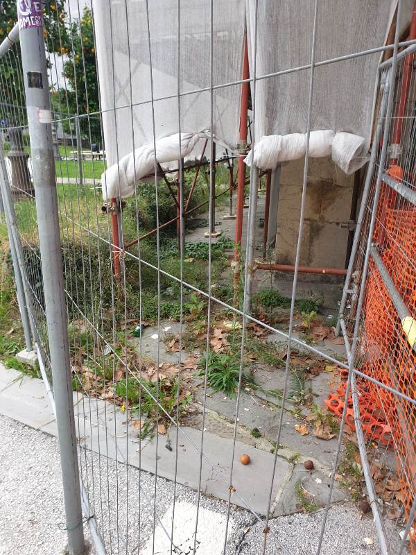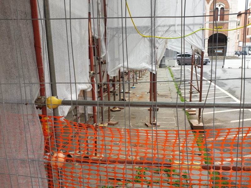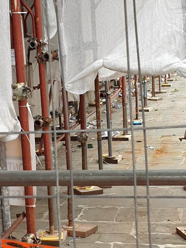 Come se fosse abbandonato lì, senza che nessuno se ne occupi, a parte i discutibili frequentatori. un mostro all'incuria e al degrado issato in mezzo ad una piazza bella e riqualificata costellata di attività e locali importanti. Il cartello segnaletico della concessione edilizia non offre ulteriori indicazioni se non che il termine previsto per il completamento del ponteggio è scaduto lo scorso 30 settembre. Altre tipologie di lavoro non sono evidenziate e questo fatto genera più di una preoccupazione per gli imprenditori ma anche per semplici cittadini, costretti a convivere con una simile bruttura per chissà quanto tempo ancora.