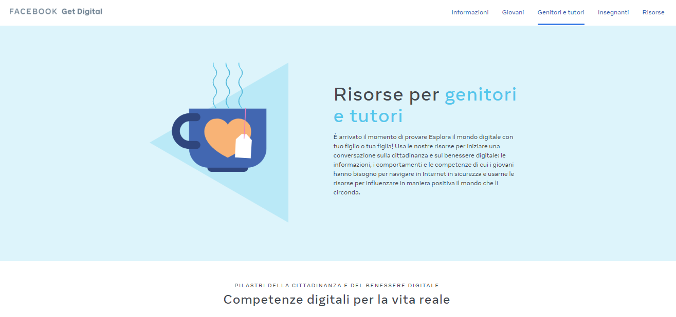In un momento storico così unico e delicato, dove tutti vivono sempre di più online, l’esigenza di conoscere e padroneggiare in modo corretto e sicuro gli strumenti del mondo digitale è imprescindibile. Ecco perché oggi Facebook ha deciso di lanciare anche in Italia GetDigital, un progetto internazionale nato per offrire approfondimenti, suggerimenti e risorse complete per aiutare genitori, insegnanti e giovani a sviluppare le competenze necessarie per diventare cittadini digitali consapevoli e responsabili e utilizzare tutti gli strumenti e le piattaforme online in modo corretto e sicuro.
