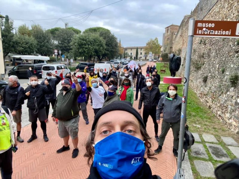 Prosegue il Cammino degli Inessenziali alla volta di Roma. Stamani il centinaio di imprenditori partecipanti è partita da San Casciano Val di Pesa. Gli ncc li hanno portati a San Gimignano, da dove è partita la marcia per Monteriggioni, con arrivo previsto attorno alle 17. Totale del percorso, 26 chilometri. A Monteriggioni i Ristoratori Toscana incontreranno il sindaco del Comune, Andrea Frosini, al quale porteranno le loro richieste e spiegheranno i motivi dell'iniziativa. Domani mattina, attorno alle 8.30, il gruppo partirà alla volta di Siena, con arrivo nella città del Palio attorno alle 10.30. Appuntamento a Roma il 13 novembre, con l'obiettivo di incontrare il premier Giuseppe Conte. Per seguire gli aggiornamenti sui social, hashtag #contearriviamo.