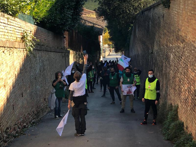 "Oggi sono in cammino da Siena a Buonconvento insieme ai ristoratori, albergatori e partite Iva riuniti nell'associazione Ristoratori Toscana, stiamo andando a Roma lungo la via Francigena, per dire al premier Conte che le chiusure da lui decise contro il Covid stanno uccidendo l'economia e il lavoro. Le nostre imprese vogliono vivere". Lo afferma il capogruppo di Forza Italia al Consiglio regionale della Toscana, Marco Stella, che stamani ha incontrato, insieme al gruppo di imprenditori, il sindaco di Siena Luigi De Mossi, il vicesindaco Andrea Corsi e l'assessore al Turismo e Commercio, Alberto Tirelli, ai quali hanno rappresentato le difficoltà delle categorie. Quindi, il gruppo si è messo in cammino verso Buonconvento, terza tappa della marcia di avvicinamento a Roma.