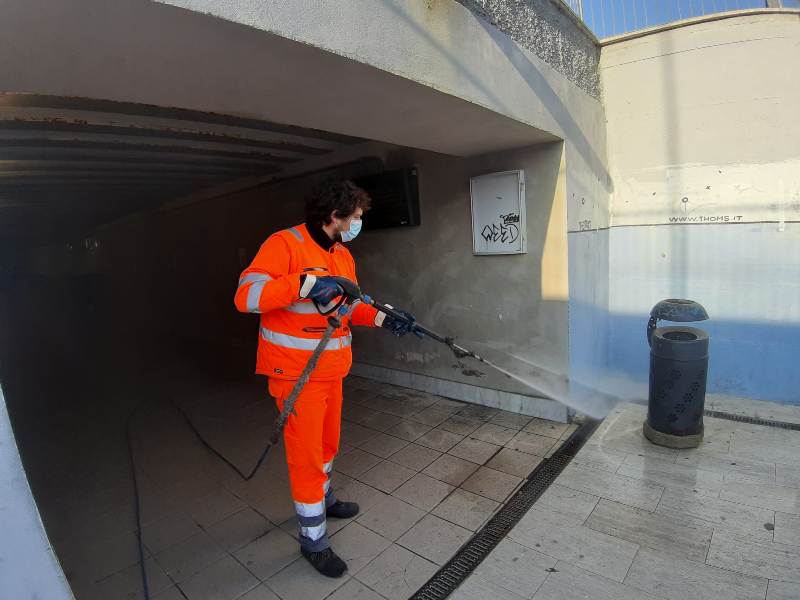 Gli operatori di Sei Toscana, così come da programma concordato, sono intervenuti nei sottopassi e nei luoghi di maggior frequentazione da parte della cittadinanza igienizzando, tramite il getto di vapore a 140 gradi, tutte le zone interessate.