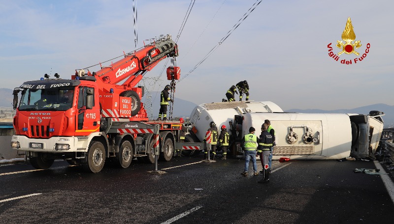 Nell’incidente la cisterna si è ribaltata, disperdendo gasolio su entrambe le carreggiate della A11 sottostante; per permettere le operazioni di pulizia della pavimentazione si è resa necessaria la chiusura temporanea in A11 dei seguenti tratti: tra l’allacciamento con la A1 e Firenze Ovest in direzione Firenze e tra Firenze Peretola e Firenze Ovest in direzione Pisa.